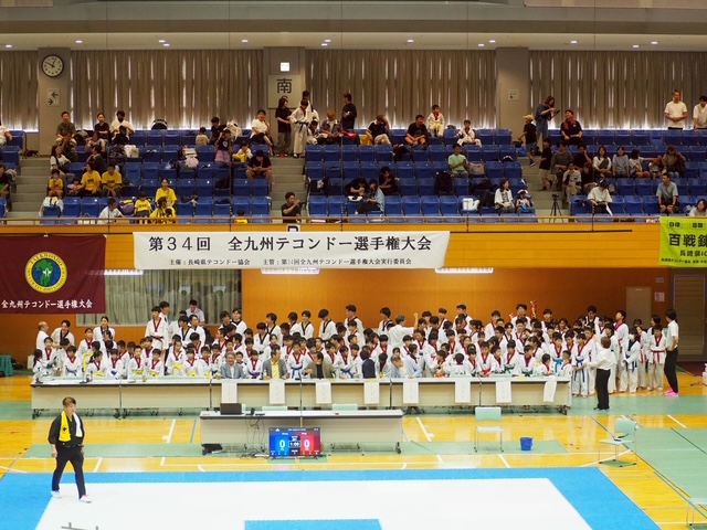 第34回全九州テコンドー選手権大会が令和7年8月24日(日)にて長崎県大村市シーハットおおむら(メインアリーナ)にて開催されました。